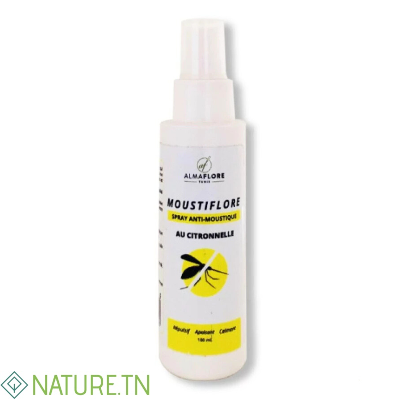 ALMAFLORE MOUSTIFLORE SPRAY ANTI MOUSTIQUES aide à éloigner les moustiques qui engendrent des piqures et a un action répulsive avec une efficacité jusqu’à 7h sur les moustiques tigres, communs et tropicaux.