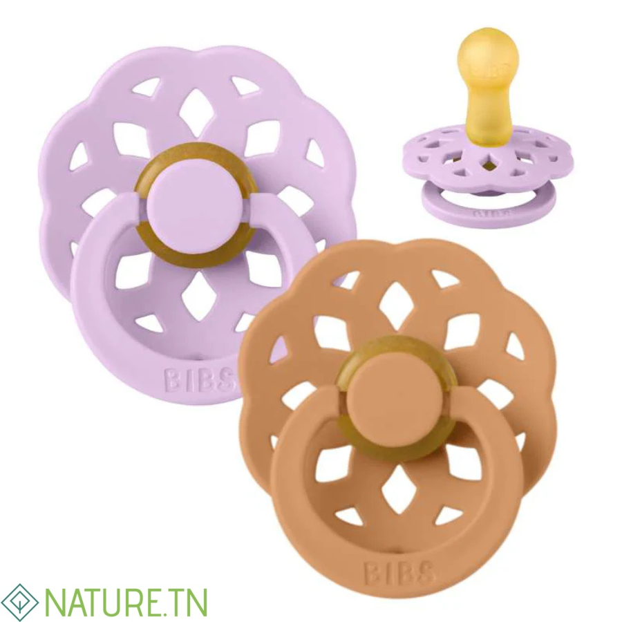 BIBS 02 SUCETTES BOHEME NATURAL RUBER VIOLET SKY PUMPKIN SIZE 2
