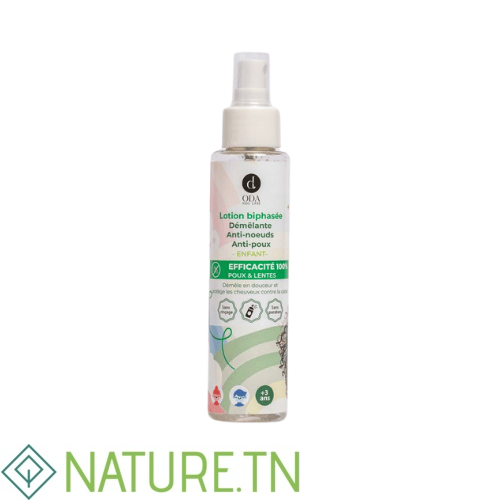 L’ODA Lotion Biphasée +3 Ans 125ml est une solution spécialement formulée pour les enfants de plus de 3 ans. Cette lotion agit efficacement en tant que démêlante, facilitant le coiffage des cheveux tout en éliminant les nœuds et en réduisant les risques de casse. Sa formule unique aide également à lutter contre les poux en les éliminant de manière douce mais efficace. Grâce à sa double phase, elle offre une action complète : démêlante, anti-nœuds et anti-poux, tout en respectant la délicatesse du cuir chevelu des plus jeunes. Facile à appliquer et à rincer, cette lotion est un allié pratique et fiable pour prendre soin des cheveux des enfants.