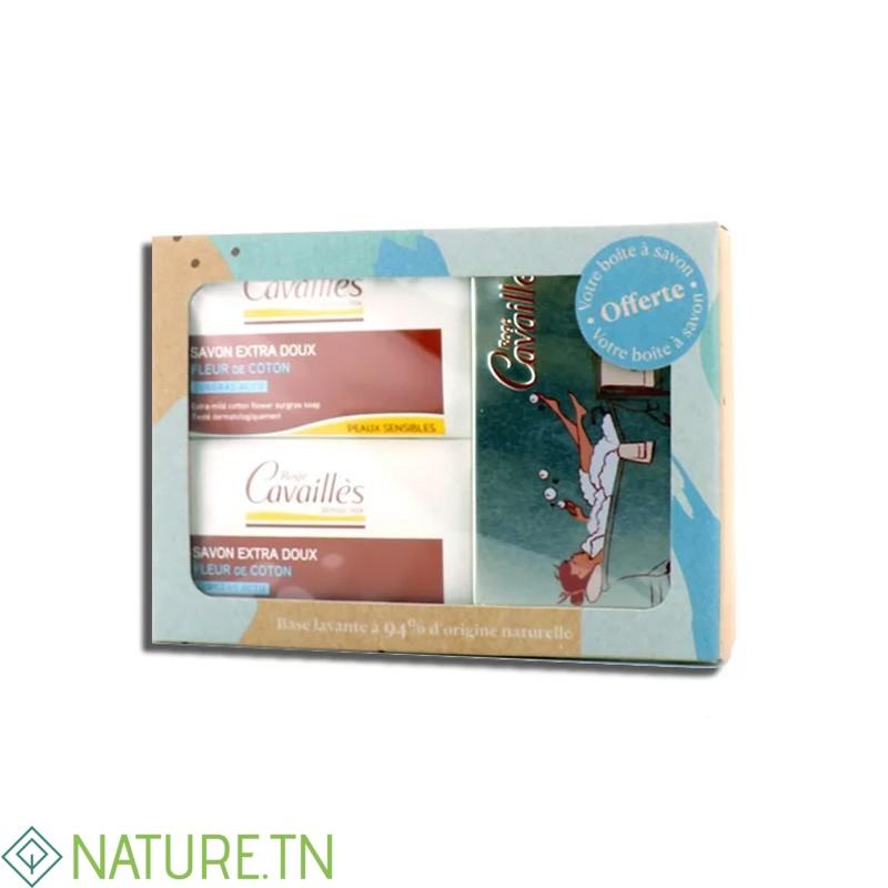 ROGE CAVAILLES PACK de 2 SAVON EXTRA DOUX FLEUR DE COTON 250gr+BOITE A SAVON (OFFERTE)